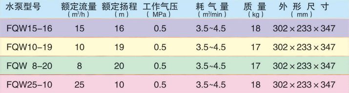 特點(diǎn): FQW(原BQF型)礦用風(fēng)動(dòng)潛水泵,該泵以壓縮空氣為動(dòng)力,采用離心泵結構形式。具有體積小,重量輕,結構簡(jiǎn)單,安裝維修方便,在含有瓦斯與煤塵的礦井中使用安全可靠,是一種先進(jìn)的風(fēng)動(dòng)排水設備。
